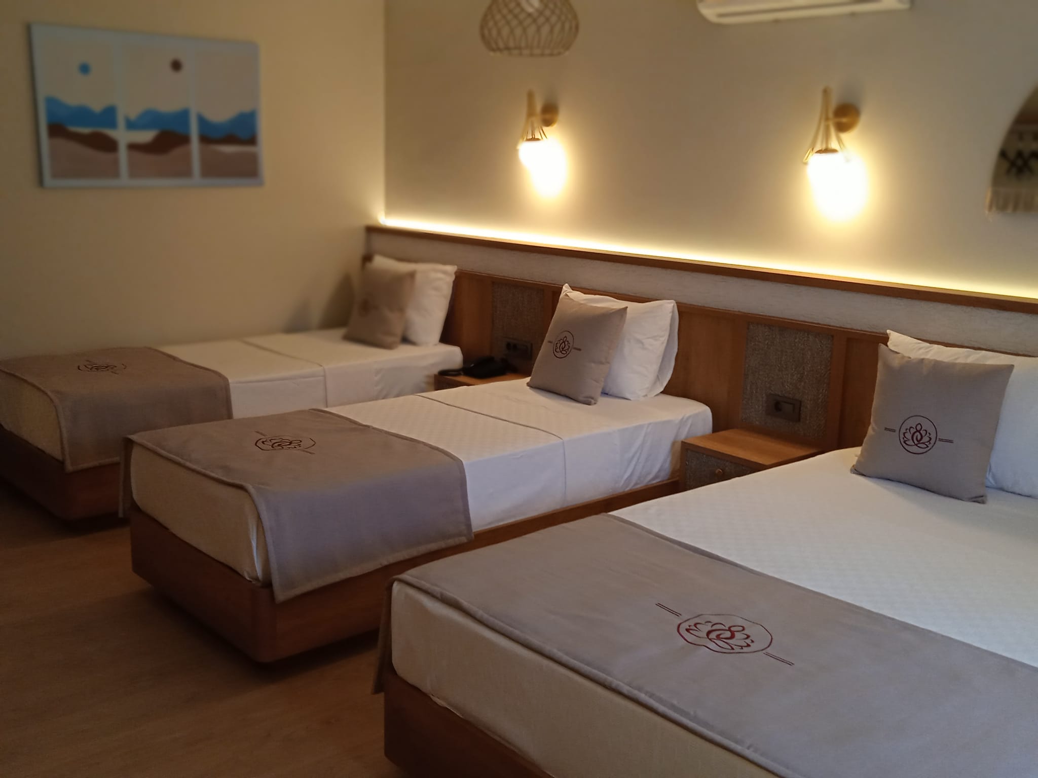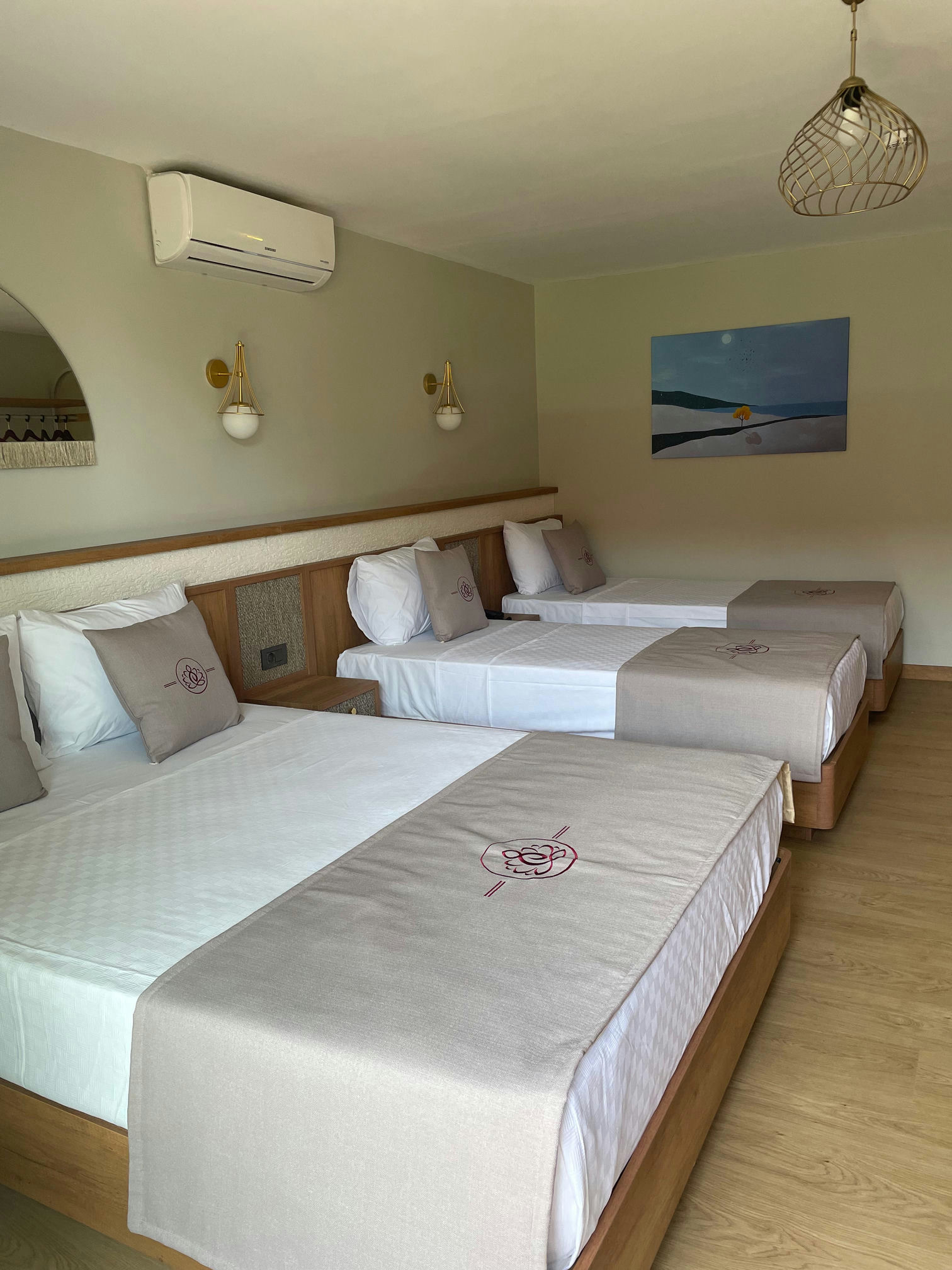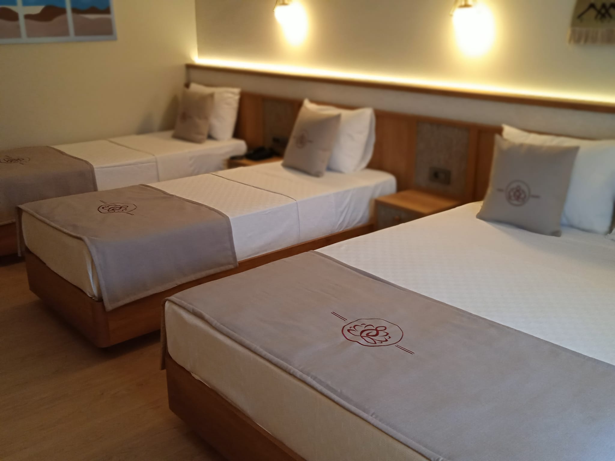 title Всего в нашем отеле есть 3 семейных номера площадью 40 м2, расположенных в главном корпусе. В номерах имеется 1 французская кровать и 2 односпальные кровати.