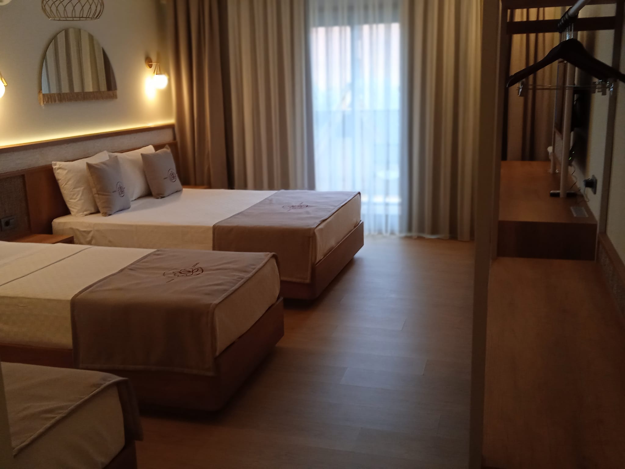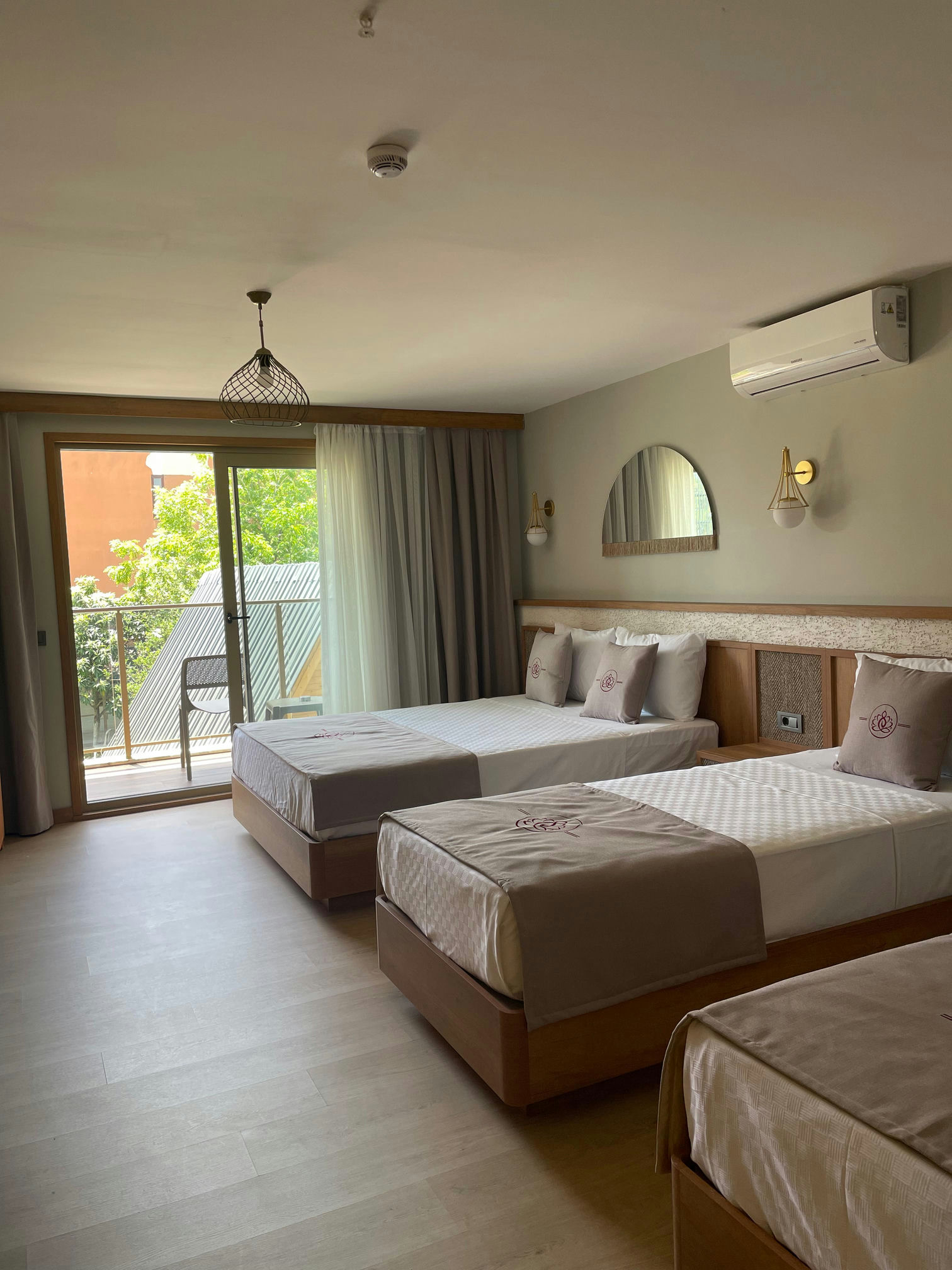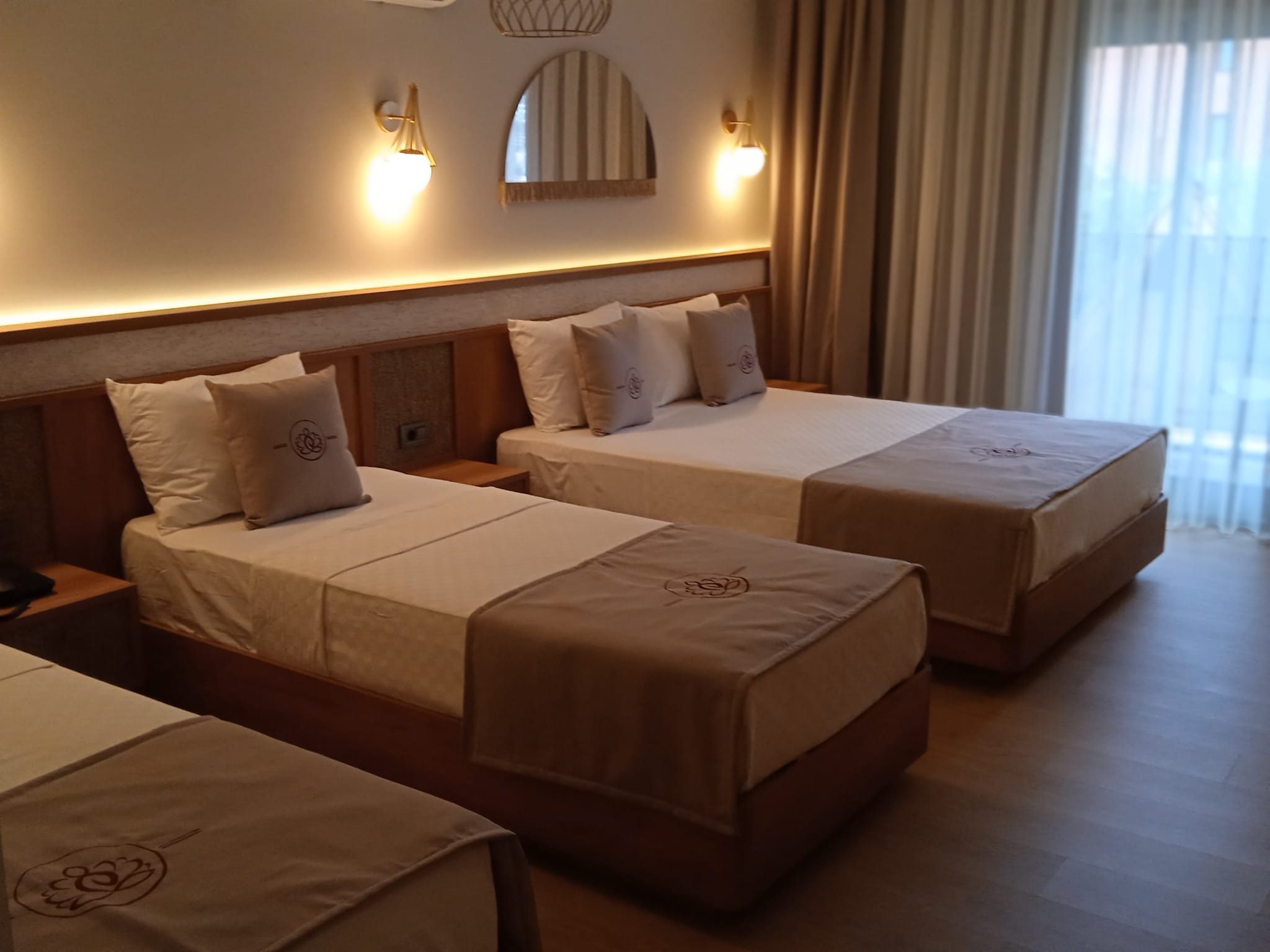 title Всего в нашем отеле есть 3 семейных номера площадью 40 м2, расположенных в главном корпусе. В номерах имеется 1 французская кровать и 2 односпальные кровати.